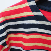 The border, which is expressed by "discharge printing" that removes the color, has a good texture like a hand-painted blur. A border T-shirt is layered with a border to create an impressive design.