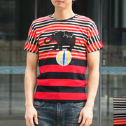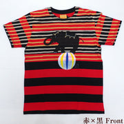 GEN SENCE Hand-painted & discharge short-sleeved T-shirt "Circus" elephant and clown border men's [GS-TS-SS05]