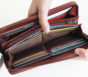 ZOO Wallet Long Wallet Italian Leather Block Check Round Zipper Brown Caracal Wallet [Z-ZLW-079-BR]