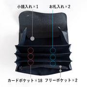 Large capacity card slots for 18 cards. Multiple card pockets for easy organization.
