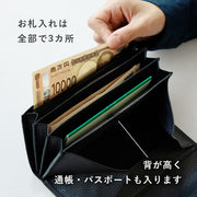 This large-capacity wallet opens wide for neat organization and can hold a bankbook and passport.