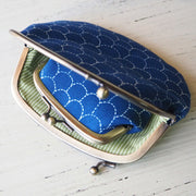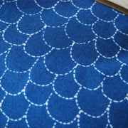 It is a clasp with a clean design print of indigo and white scales. Reminiscent of the traditional Japanese pattern Seigaiha, it is very elegant.