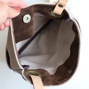 A basic and easy-to-use unbleached canvas fabric. The moderately glossy genuine leather handle creates a high-quality atmosphere. The antique metal fittings are not overly decorated, giving a mature and sophisticated impression.