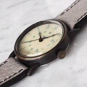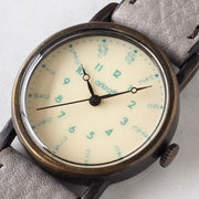 Hand-written numbers have been added to the basic design of the dial. We are working on a watch with a sense of fun. In addition, the material of the case is brass, and the belt is mainly made of high-quality leather tanned with vegetable tannins, and the taste will deepen with use.