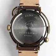 | Functions and Materials | [Movement] Japanese quartz, 3 hands [Case] Brass / Case back and buckle are stainless steel [Belt] Vegan leather [Windshield] Glass |