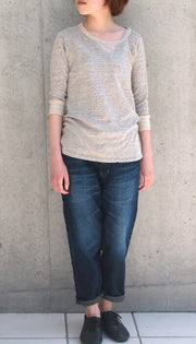 The model is 156 cm tall, has a 7-9 body type, and is wearing a size S. She wears a rolca on the notes heathered gauze cotton sheeting crew neck 3/4 sleeve T-shirt. ≪Click the image to enlarge≫ |