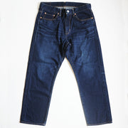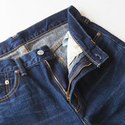 The front has a zipper fly for easy wear, and the back style is simple, just like the classic 5-pocket denim. The red selvedge stitching is a nice accent when rolled up. To give it a worn-in look, it is finished with a rough texture using an old-fashioned loom. It is also "rubbed" to give it a worn-in look and a faded look. The dark indigo, close to navy blue, is easy to coordinate with other colors. You can enjoy the aging and fading that is unique to denim, so you will love it more and more every day.
