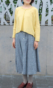 One of Garage's characteristics of making clothes is the biased use of double gauze fabric. Normally, fabrics for clothes are used according to the length and width of the weave, but by using bias, elasticity is created in the length and breadth. In the simple design, we have put ingenuity to make full use of the characteristics and texture of double gauze.