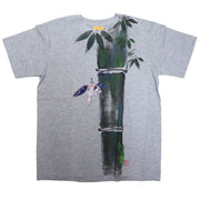 GEN SENCE Japanese pattern hand-painted & remade short-sleeved T-shirt "Sagano moso bamboo" Frog Heather Gray Men's Women's [GS-TS-SS01]