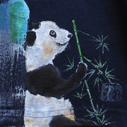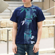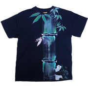 GEN SENCE Japanese pattern hand-painted & remade short-sleeved T-shirt "Sagano moso bamboo" Panda navy blue men's and women's [GS-TS-SS02]