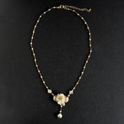 A delicate necklace with an antique design that is cute and mature. The top is designed to look like a collection of small sparkling stars. The dangling charm decorates the neck.