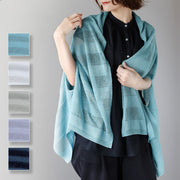 SAIFUKU mino nico Stole Poncho, Cool Summer Linen with Sheer Solid Stripes, Women's [162-04-05], Gosen Knitwear Brand, Gosen City, Niigata Prefecture