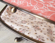 Comes with a cute salmon pink purse gusset with a lace floral design. It has a cute size and is likely to be useful as a bag in a bag.