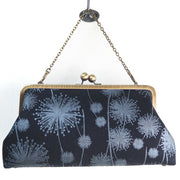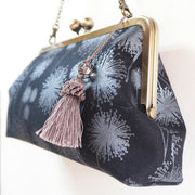 | poussette is a gamaguchi brand produced by Daisuke Ogawa, a gamaguchi artist. The fabric materials used for the purses are diverse, including cotton, linen, and wool, and there is a wide variety of patterns and colors. From countless combinations of textures, colors, and patterns, Mr. Ogawa chooses what he thinks is the most beautiful. is removed. This is a gamaguchi bag with a very impressive fluff pattern printed on a smooth cotton fabric. It has a calm atmosphere with silver on a black background, but the pattern is something you won't find anywhere else, so you can definitely enjoy a higher-grade fashion. It's a nice item that looks great with simple fashion. The bag can hold everything you need for going out, so you can carry it stylishly as an accent to your outfit. ・The long strap can be used like a pochette. (A chain strap is used for wearing.) ・A short chain of 32cm is attached. I'm happy because I can change it according to the situation. The clasp bag itself has an elegant shape that is more formal, so you can carry it with a moist and mature atmosphere. Good for everyday use as well as casual wear. Depending on the angle you look at it, the silver pattern shines brightly, or it looks like a calm gray tone. The similar color tassel gives it a mature look. The inner fabric also uses the same fluff pattern in different colors. The pattern is the same inside and out, but it gives a different impression. Also, if the inner fabric is a bright color, it will be easy to find when looking for the contents of the bag. It is large enough to hold a woman's essentials, making it perfect as a party bag for weddings and other occasions! In the example of use, I put a long wallet, smartphone, pouch, and handkerchief. If you pack the handkerchief a little more, it feels like there is still a little room to enter. It can be used not only for western clothes but also for Japanese clothes. Not only for yourself, but also recommended as a gift for birthdays, Christmas, Valentine's Day, White Day, birthdays, etc. If you would like wrapping, please let us know in the remarks column (free entry column) when ordering. |