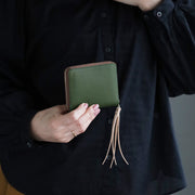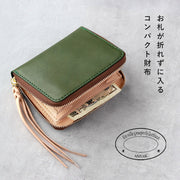 [Can store bills without folding] ANNAK Compact Round Zip Wallet Tochigi Leather Green for Women and Men [AK22TA-B0005-GRN]