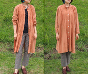 Double Gauze Open Front Tunic Stripe Long Sleeve Ladies [JK-23]