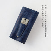 Re-ACT Yamato Indigo Dyed Key Case, Paisley [RA2507-007-PA] Authentic Indigo Dyed Leather Accessory, Brand Name (Replica)