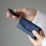 | A key case dyed with natural Yamato indigo without the use of any chemicals, suitable for storing smart keys. |