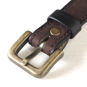 The buckle metal part is made of antique brass, giving it a nice atmosphere. It matches well with high-quality belts.