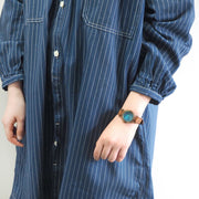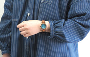 A handmade wristwatch with an impressive clear and deep blue dial. The blue dial is expressed by using paint containing copper powder to generate non-toxic blue rust. One point at a time, the coloring and color unevenness are slightly different.