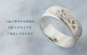 The smoked finish has a clear and three-dimensional cherry blossom pattern, and is a beautiful design that catches the eye. Men can wear it without discomfort, and it goes well with Japanese clothes such as kimono! The smooth silver texture is comfortable to wear and fits nicely on your fingers.