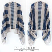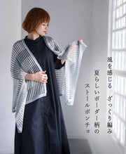 mino nico Stole Poncho, Loosely Knitted and Windproof, Border [242-01-05] Women's Cardigan, Spring/Summer