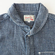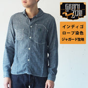 A shawl collar shirt using selvedge jacquard fabric from the denim brand graphzero in Kojima, Kurashiki City, which is known as the best jeans production town in Japan!