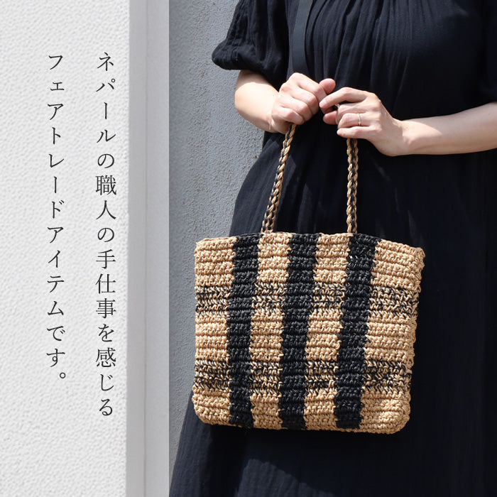 The large block check pattern, made by combining two colors of paper yarn, black and beige, is simple yet stylish.