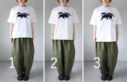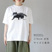 [2 colors, 3 sizes] HARVESTY Iwasato Miki Print Box T-shirt CAT Women's [A52505] Okayama Kurashiki Kojima Standard clothing brand