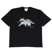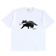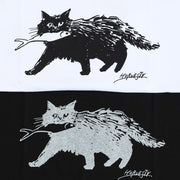 A cat holding a fish The round body is gentle on the skin, and the neck is a neat crew neck. The wide silhouette is comfortable to wear, and the monochrome illustration is perfect for adult casual wear.