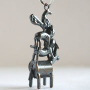 | They are tiny bronze statues, but their singing voices resonate far, wide and loud... This bronze necklace is based on the famous Grimm fairy tale "The Bremen Town Musicians." In addition to the dogs and cats that often appear in Koizumi's accessories, a donkey and a chicken have also been added. The bronze material matches the strength of the animals in the story, evoking the story. The silhouette has a gentle, rounded feel, making it a well-balanced accessory. The design can be worn by both men and women, making it a great gift for animal lovers and fairy tale fans. |