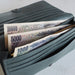 3 bill compartments, 1 coin purse, 18 card pockets, 3 free pockets