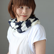 When unfolded, it is a 160cm x 70cm shawl type, but by simply cutting two slits it can be transformed into a poncho. It has a simple single-color striped pattern created by changing the number of threads.