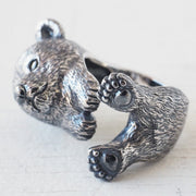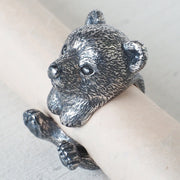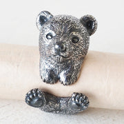 | Plump and rounded form, gentle eyes. The popular animal, the bear cub, which is popular among men and women of all ages, is now available as a silver ring. By applying a unique oxidizing process to the eyes, life is breathed in and a lively expression is created. In addition, by firmly capturing the characteristics and gestures of the bear cub, it will be more realistic and cute. Every single coat of fur has been carefully recreated, and the softness of a bear cub has been faithfully reproduced. |