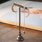 Earrings with a beautiful contrast between gold-colored stars and silver moons. The impact of the moon is slightly understated, creating a more delicate atmosphere.