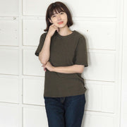 Hand-dyed plain color, loop-knit, organic cotton, short-sleeved T-shirt, "Mir-iro" for women [OT-MIR-LADIES]