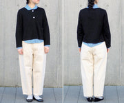 | "DEEP BLUE" is a women's denim brand born in Kojima, Kurashiki, Okayama Prefecture. Since 1948, the brand has been produced by Maeno Co., Ltd., a long-established company that has been producing workwear and school uniforms in Kojima for many years. Kojima was a town famous for its cotton cultivation and cotton industry during the Edo period, and is now one of Japan's leading textile manufacturing towns, producing jeans and other products. This town has everything you need to make jeans, including high-quality fabrics, durable sewing, and advanced fabric processing techniques. "DEEP BLUE" also produces basic, reasonably priced tops that go well with jeans made in an ideal manufacturing environment. These simple ivory-colored pants have a wide, loose silhouette that gives them a mature and cute look. The silhouette is tapered towards the hem, giving it a not-too-loose look that makes it perfect for a neat and tidy look. The pants are just the right length, so they look neat when worn without rolling them up. You can also roll them up for a light look, and pair them with boots or socks, or sneakers for a stylish look. The yellowish ivory color is not pure white, but is an excellent color that can be worn in any season. It also gives a calm and gentle impression. It has a simple 5-pocket design. The coin pocket has a cute shape. You can enjoy watching the rivets change as you wear it. The fabric is a moderately thick 100% cotton off-white material. It is essential for a natural style. The napped texture is also a point. It is recommended not only for yourself, but also as a gift for birthdays, Christmas, Valentine's Day, White Day, Mother's Day, etc. If you would like gift wrapping, please let us know in the comments section (free entry section) when ordering. |