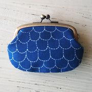 It is a clasp with a clean design print of indigo and white scales. Reminiscent of the traditional Japanese pattern Seigaiha, it is very elegant.