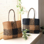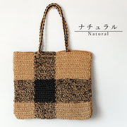 [2 colors] ENA KUAM Paper Yarn Basket Bag Block Check Tote [24SKU006] Women's Shoulder Bag, Handbag, A4, Spring/Summer