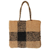 A basket bag perfect for spring and summer outings. A stylish impression with a large black and beige block check.
