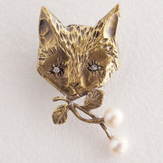 sasakihitomi cat brooch brass & pearl [No-076]