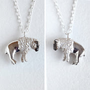 This sheep necklace is surreal yet cute, with the sheep looking a little pitiful after having half of its wool shaved.