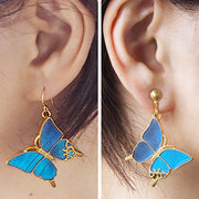 Blue Morpho Butterfly Earrings (Brass Gold) Lineup