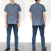 graphzero Hem Pocket Shirt Indigo Chambray Fabric Paisley Pattern Short Sleeve Men's [GZ-HMPKS-0204-PIS-MENS]