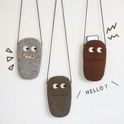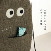 This wool felt mobile shoulder bag has cute, darting eyes. The felt base is kneaded by hand, so it's full of love and strength.