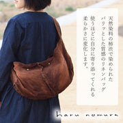 | A bag filled with author Nomura Haruka's thoughts about nature. This lightweight 100% linen shoulder bag is hand dyed with natural dyes. |