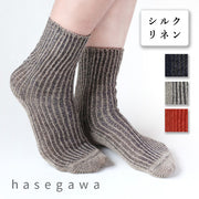 hasegawa Hasegawa Shoten Silk Linen Relax Ribbed Socks Ladies [LE0816] Crew Length