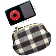 This 4.5-inch size fits the iPod classic perfectly in landscape orientation, and is more user-friendly than the 3.3-inch size. The ball is off-center, making it a "horizontal twist" clasp, so it's easy to hold and open with one hand! This purse is perfect in terms of both appearance and ease of use.