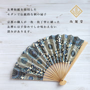 A paper fan made using Kyo-Yuzen paper from Shogado, a long-established Kyoto manufacturer of Japanese stationery.