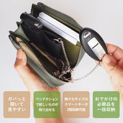 Made with soft Himeji leather and smooth-opening YKK Excella zippers. The included auxiliary chain can be used to prevent keys from falling out, or to leave the key out even when the zipper is closed, expanding the range of uses.